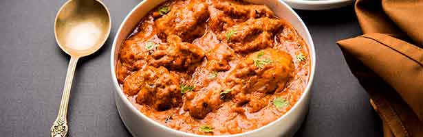 Traditional dish of chicken cooked in a mildly spicy gravy enriched with butter for a lip smacking taste